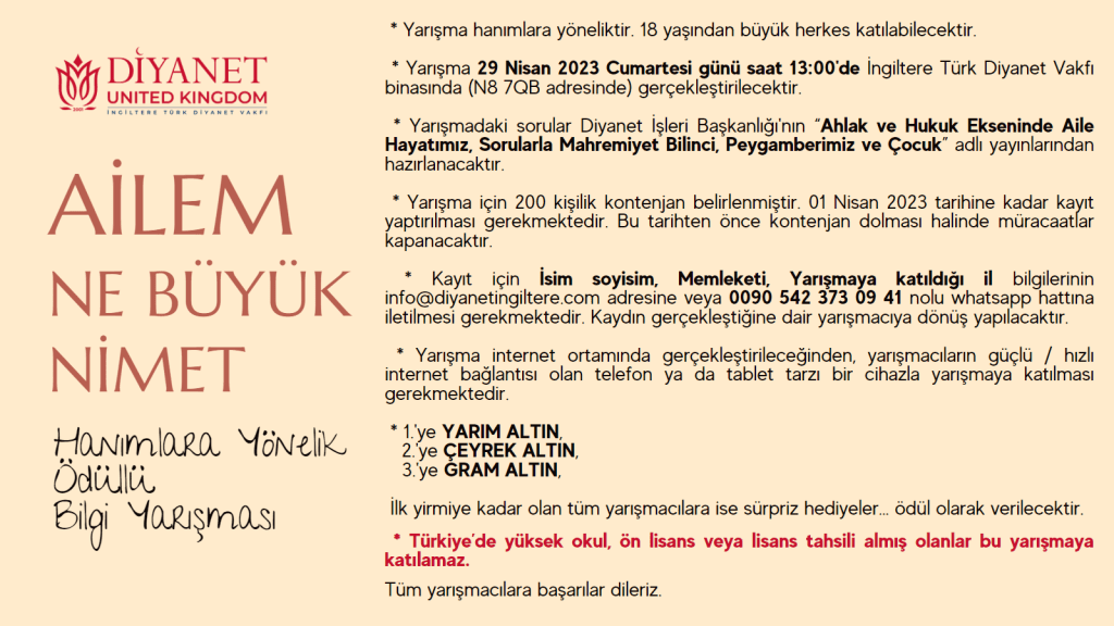 AİLEM NE BÜYÜK NİMET Hanımlara Yönelik Ödüllü Bilgi Yarışması